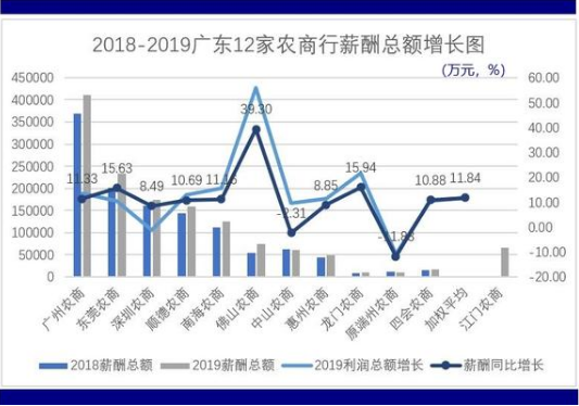 其中,薪酬總額增幅最高的是佛山農商銀行39.30%(相關詳情見本文附圖四),與其利潤總額同比增長55.78%相對應。增幅最低的是原端州農商銀行-11.83%,也與其利潤總額負增長相對應。