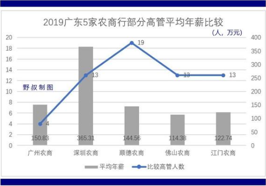 2018年度,廣州農商銀行董事長、行長稅前年薪均為115萬元;順德農商銀行19名高管人員合計領取薪酬2746.7萬元,人均144.56萬元。