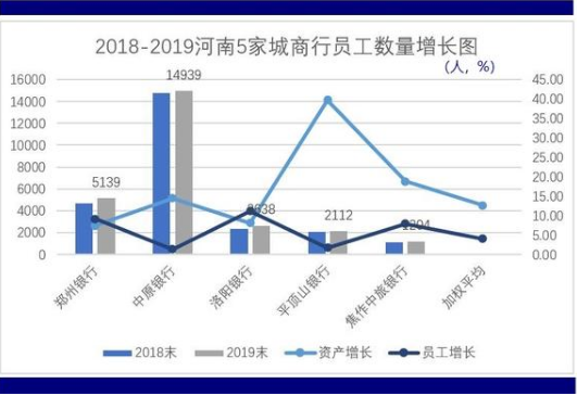 其中,合并口徑員工數量最多的是中原銀行14939人,同比增長1.32%,增幅最低;員工數量最少的是焦作中旅銀行1204人,同比增長7.89%,增幅僅次于鄭州銀行(相關詳情見本文附圖二)。