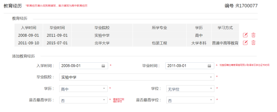 *教育經歷請從低到高填寫,首次填寫為高中教育經歷