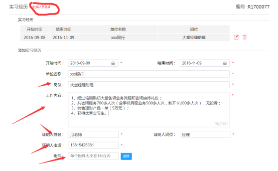 這里證明人同事、領導都可以,如果家長是行內的不要填家長,附件可以填實習證明,沒有的話就空著,不是必填項。