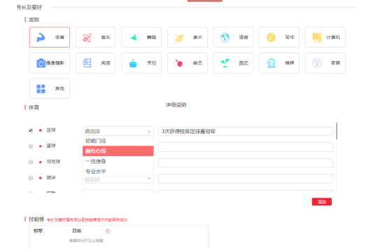 獲獎:這里沒什么好說的,唯一就是有很多同學“獲獎情況”空著,因為很多佛系同學有關獎勵方面的活動、賽事的基本上都沒有參加過,所以這里只好空著;但是很多同學往往忽略了一個可以填寫的獎項那就是團體獲獎經歷,一般情況下很多班級活動或者社團活動作為參與者這些獎項也是有同學的一份功勞的,所以同學所參加的團體有過獲獎經歷時這個也是可以填寫的;先不談獎項質量高低,這里至少沒有空著簡歷完整度也高了。