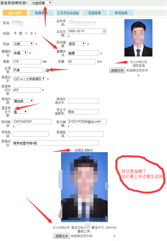 照片的話是重點,除了上傳格式以及大小外,證件照和生活照還需要的是近期照!然后有關證件照和生活照本身也是也要求的: