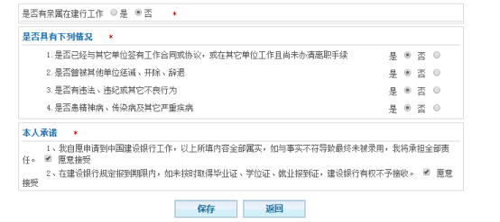 是否親屬在建行工作以及下面情況直接如實選擇就好。