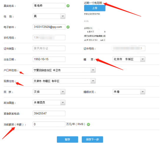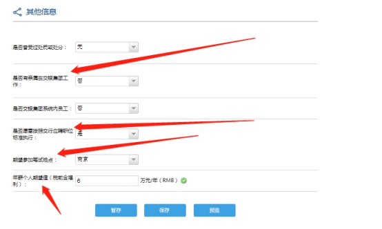 當前薪資(年薪):這里的話由于大家都是應屆生直接填“0”即可。