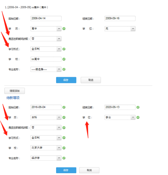 各位應聘者在填寫簡歷-教育信息環(huán)節(jié)時需注意頁面上方溫馨提示:“請依次添加高中或中專、大專(選填)、本科、雙學位(選填)、碩士、博士階段”。不按順序填寫或遺漏中間環(huán)節(jié)將無法正常保存。