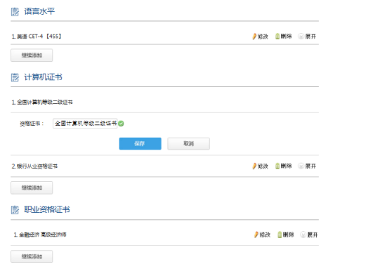 有關(guān)語音水平和證書如實填寫即可,沒有的可以空著。