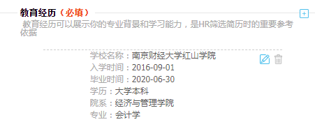 這里暫時沒有看見是否需要填寫高中以及填寫順序,如果你是本科可以直接填寫一個本科教育經(jīng)歷。