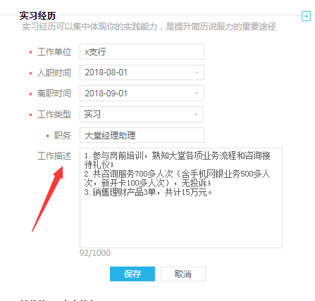 同時也是因為很多學生沒有正規(guī)的實習只有一些零散的兼職活動,這里的話就盡量寫和同學所報銀行崗位相關(guān)的一些兼職經(jīng)歷,描述過程中注意用詞盡量用數(shù)據(jù)和技能說話。