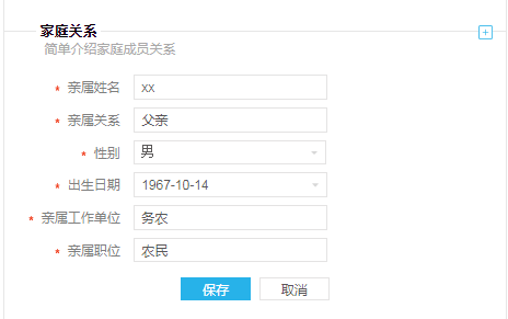 如實填寫即可,經(jīng)常遇到一個問題是父母是經(jīng)營小型店面的,應(yīng)該如何寫?一般工作單位就是令尊令堂店鋪名字,職務(wù)就是個體經(jīng)營戶。