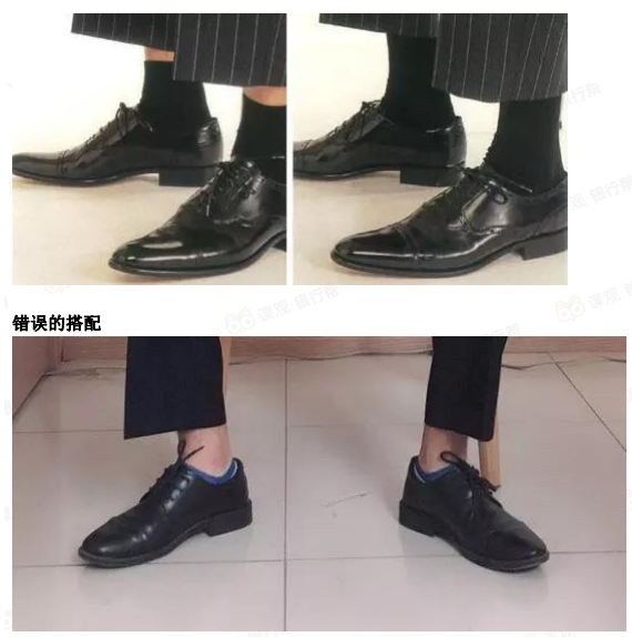 襪子:襪子應和衣服相協調,顏色多為深藍、黑色、灰色或棕色,避免白色。(此 次小觀因為準備倉促,就穿了一雙不跟西服顏色相搭的襪子,被無情的吐槽了一 番)