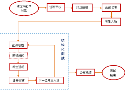 抽簽入場(chǎng):考生根據(jù)所抽取的號(hào)碼按順序入場(chǎng)面試。每人的時(shí)間在5-25鐘之間。