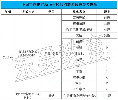 1.從上圖可以看出工商銀行的筆試內容很豐富,從常見的EPI到專業知識以及時政、常識、行情行史和性格測試都會有所涉及,每年的筆試內容變化基本不大,所以通過本圖我們可以更有針對性的進行筆試學習。