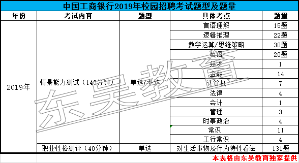 3. 工商銀行全球校園招聘筆試內容參考如下