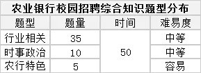 至于綜合知識這一塊,主要考察的是行業(yè)相關(guān),時事政治和農(nóng)行特色,行業(yè)相關(guān)題量占比多。