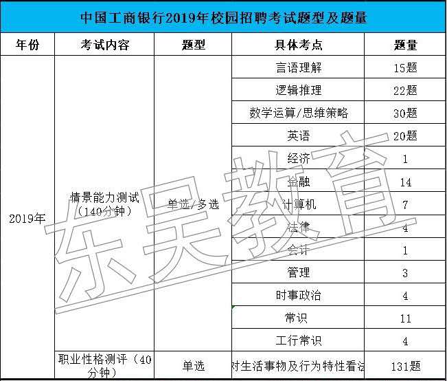 注意:以下均為歷年考試題型及題量,僅供參考,具體以工商銀行考試為準。
