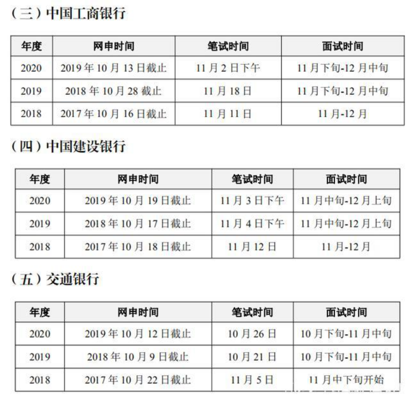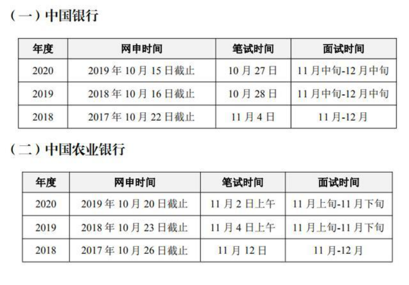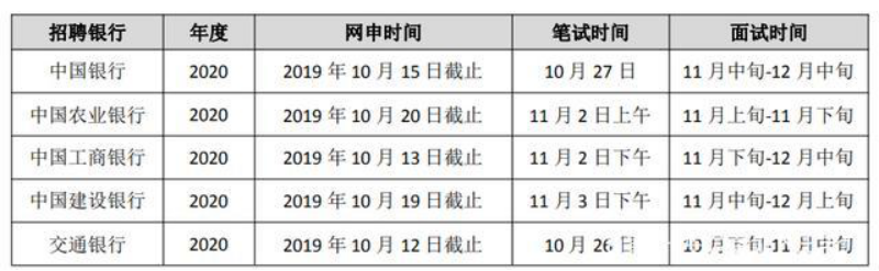 從時間表來看,銀行一般于10月份發布招聘公告, 10-11月份進行考試,整個招,聘流程持續3個月左右,從網申到筆試,僅有1個月左右的時間。對于考生來說,備考時間緊張,復習難度較大。