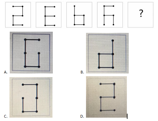 5、學者J正在玩火柴棍游戲。他用五根火柴棍依次拼了4個圖形,這四個圖形是有一定規律的。你能發現他拼火柴棍的規律,并在問號處選出正確的圖形嗎?( )