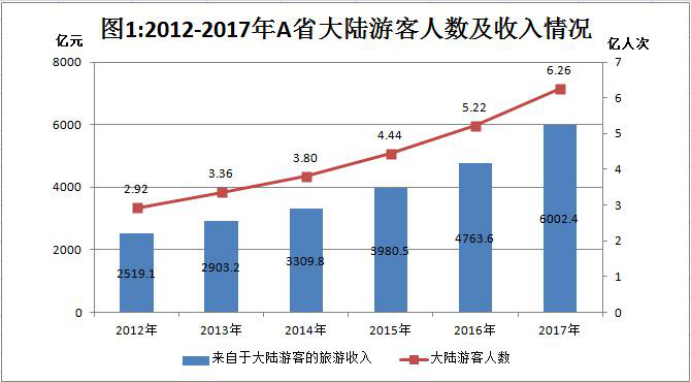 ①2012-2017年全省來自大陸的游客總數(shù)超過25億人次