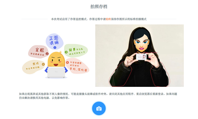1.工具準備:本次考試全程視頻監控(監控視頻、聲音),只支持有攝像頭的PC端,不支持手機和Pad等移動設備;