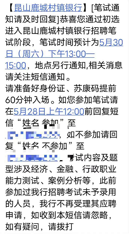 2020年昆山鹿城村鎮銀行春季校園招聘筆試通知