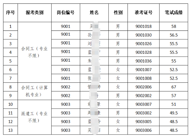 1.根據應聘人員筆試成績從高分到低分,按1:2決定面試參加人員,如面試入圍最后一名出現分數并列的,并列人員均參加面試。