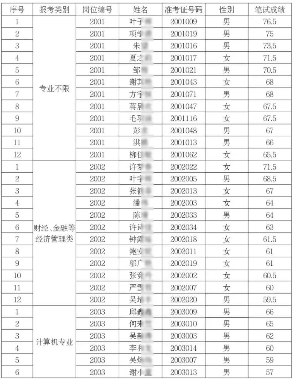 1.根據(jù)應(yīng)聘人員筆試成績從高分到低分,結(jié)合招聘計劃人數(shù)決定各崗位面試參加人員,具體為:計算機(jī)專業(yè)和財經(jīng)、金融等經(jīng)濟(jì)管理類按招聘計劃數(shù)的1:3決定面試參加人員,專業(yè)不限類按1:2決定面試參加人員,如面試入圍最后一名出現(xiàn)分?jǐn)?shù)并列的,并列人員均參加面試。