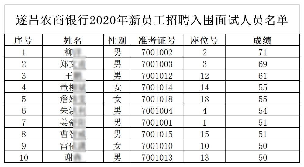 按照《遂昌農商銀行2020年新員工招聘公告》規定,現將招聘考試面試入圍人員名單進行公布,面試具體時間、地點將另行通知,請入圍面試考生保持手機暢通!