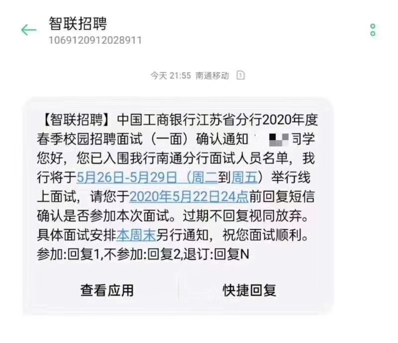 2020中國工商銀行南通分行春季校園招聘面試通知