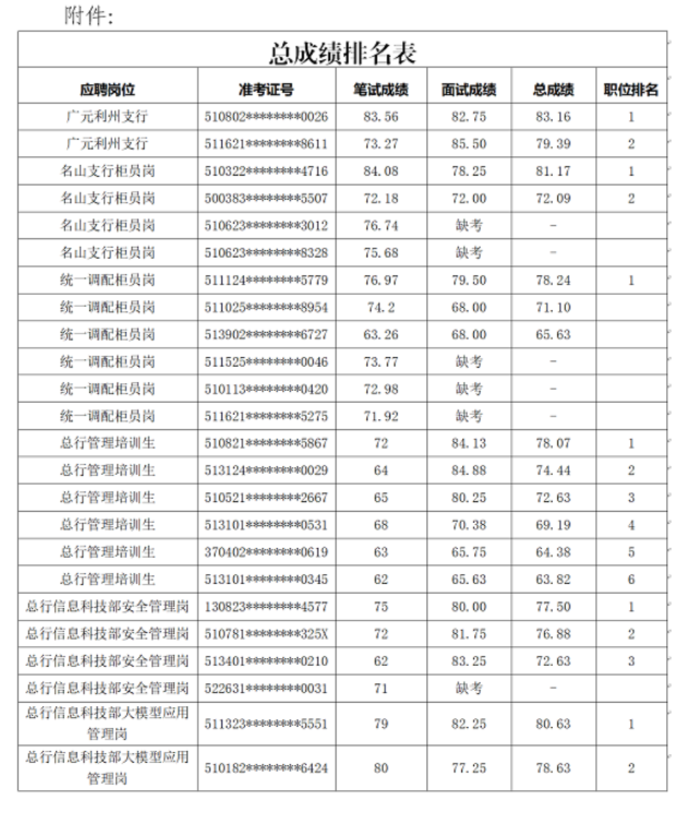 2025年雅安市商業銀行招聘考試總成績排名及體檢公告