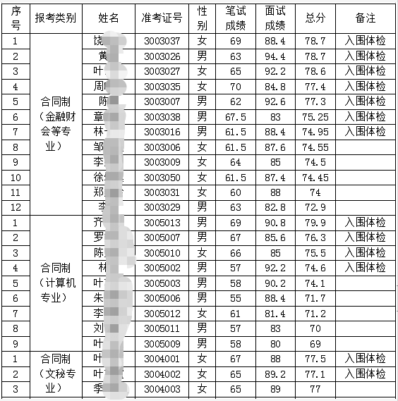 按照《青田農商銀行2020年新員工招聘公告》有關規定,現將招聘成績及體檢入圍人員名單進行公示,具體公示事項如下: