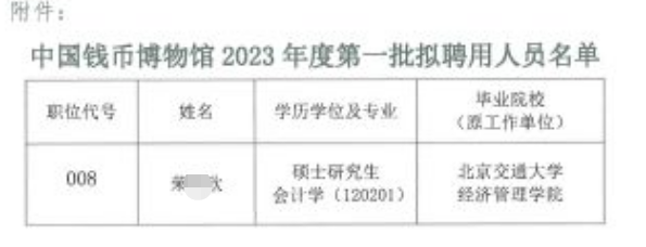 2023年中國錢幣博物館第一批擬聘用人員公示