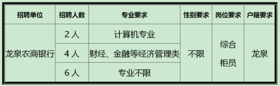 具體報名專業信息請參考招聘公告,詳見《2020年龍泉農商銀行春季招聘公告》。