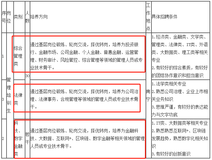 具體崗位及職位表請參考招聘公告,詳見《2020年廣西北部灣銀行(春季)校園招聘啟事》。
