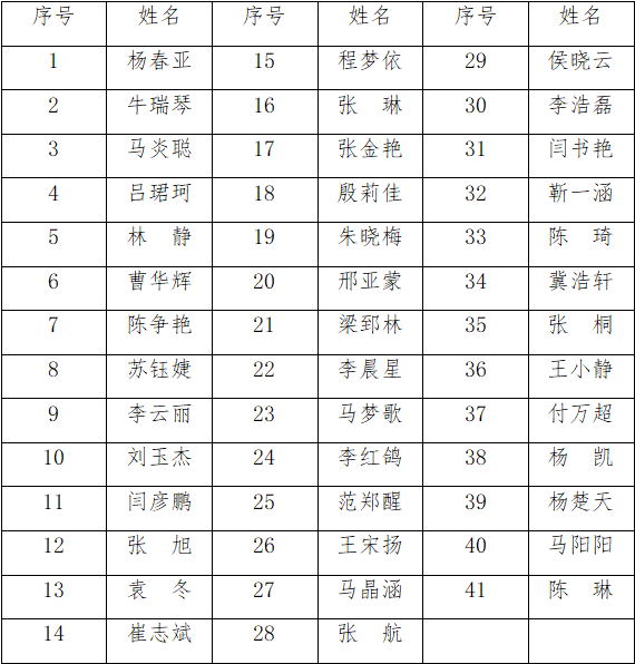 按照招聘要求報名并通過資格審查的考生,具體名單如下表: