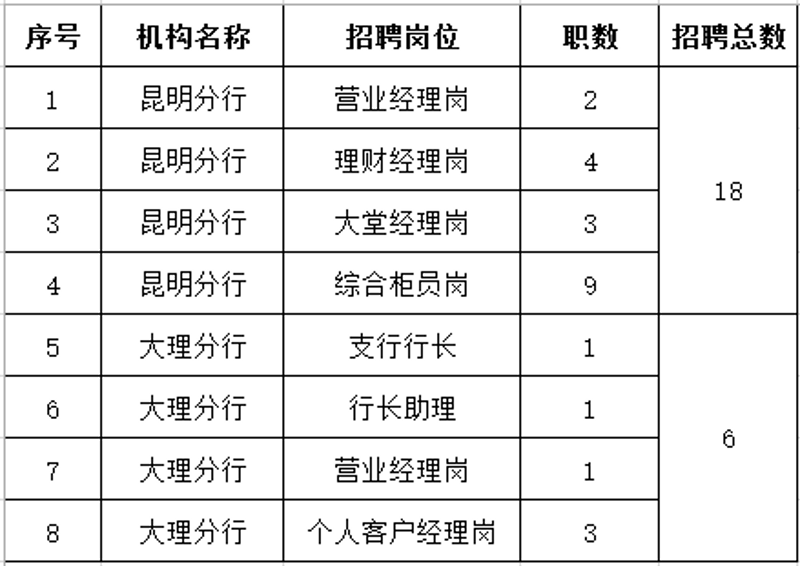 為滿足云南紅塔銀行昆明分行、大理分行的業務發展需要,現面向社會公開招聘各專業人才,誠邀業界精英加盟,帶著您的智慧、熱情和創造力起飛,在夢想開始的地方與我們共創輝煌未來。