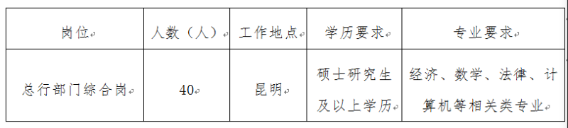 3、遵紀守法、誠實守信,具有良好的個人品質(zhì)及道德修養(yǎng),無不良記錄;認同曲靖市商業(yè)銀行企業(yè)文化。