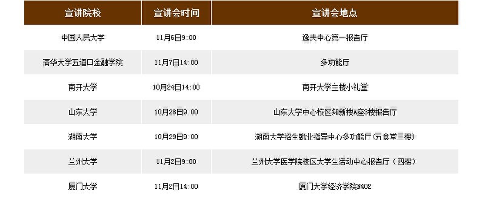中國郵政儲蓄銀行2014校園招聘宣講會行程表