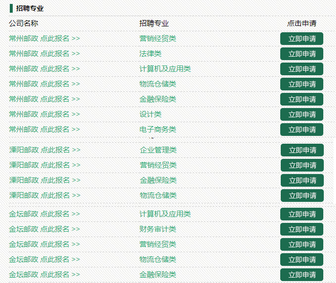 常州郵政及所轄縣(市、區)分公司招聘條件: