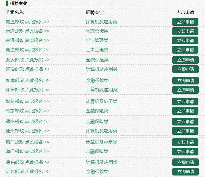 南通郵政及所轄縣(市、區)分公司招聘條件: