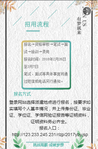 銀行招聘網(www.llwin.cn)溫馨提示:凡告知“加qq聯系、無需任何條件、工作地點不限”,收取服裝費、押金、報名費等各種費用的信息均有欺詐嫌疑,請保持警惕。