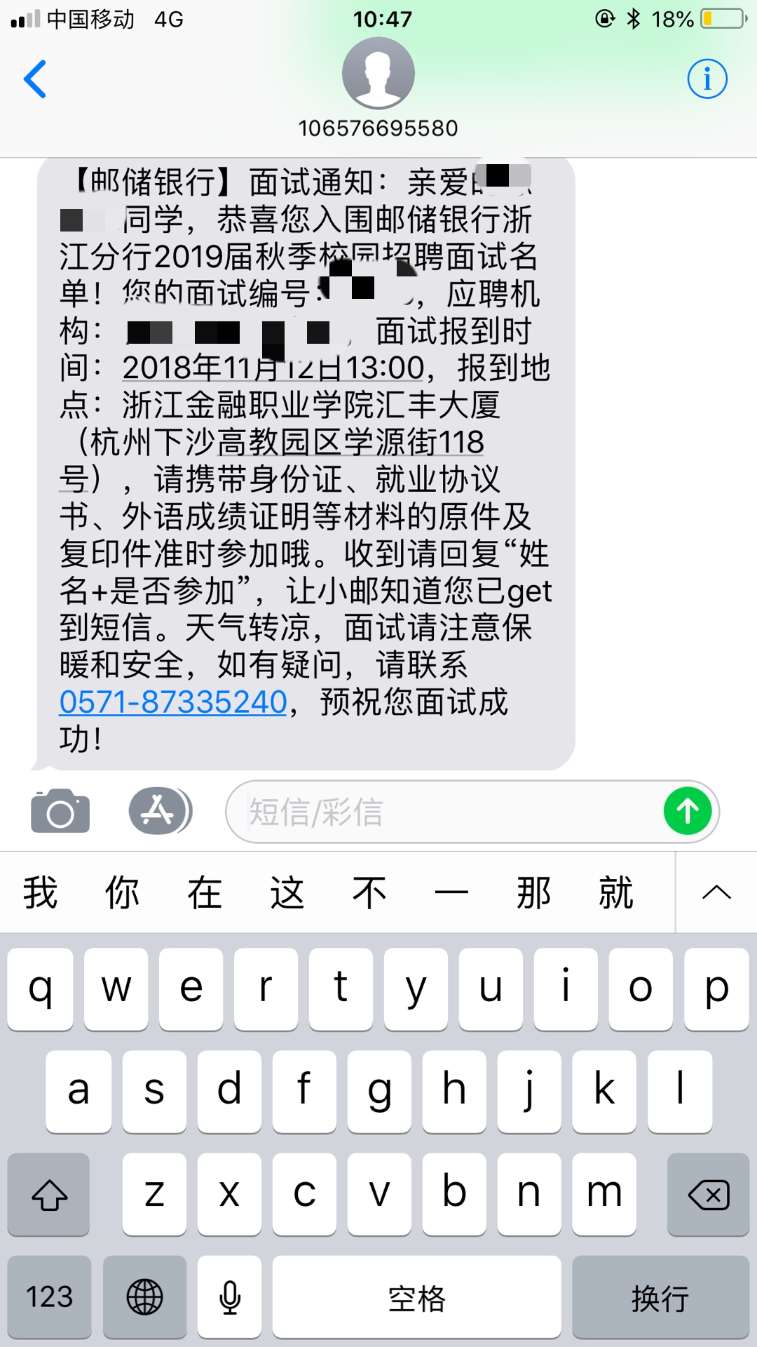 [浙江]2019年中國郵政儲蓄銀行浙江省分行校園招聘面試通知