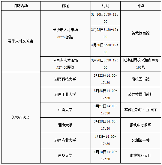 B、在中國郵政儲蓄銀行湖南省分行舉辦的專場招聘會現場投遞簡歷,專場招聘會時間安排見下表。