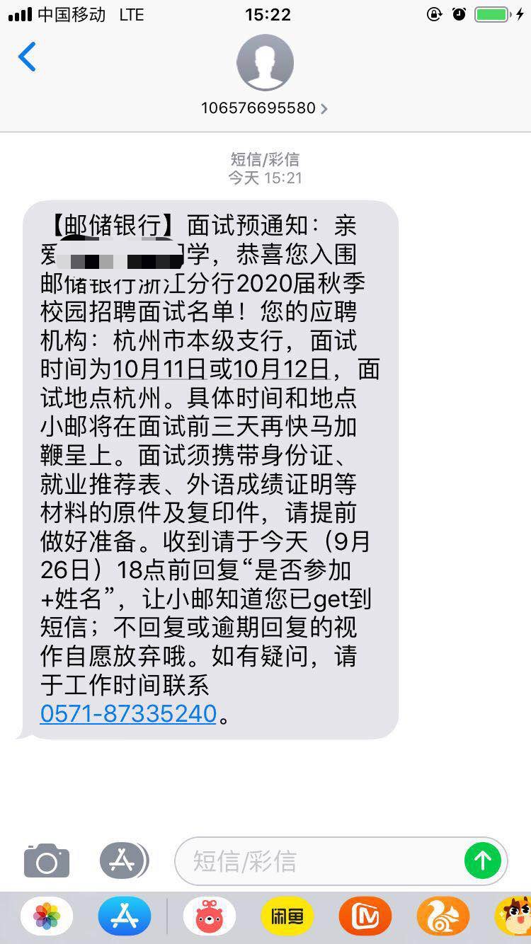 [浙江]2020中國郵政儲蓄銀行浙江分行校園招聘面試通知