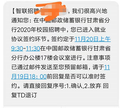[甘肅]2020年中國郵政儲蓄銀行甘肅省分行校園簽約通知