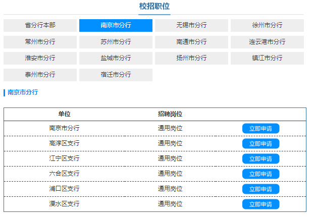 江蘇省分行本部招聘科技類崗位,地市分行及其轄內分支機構招聘通用崗位。