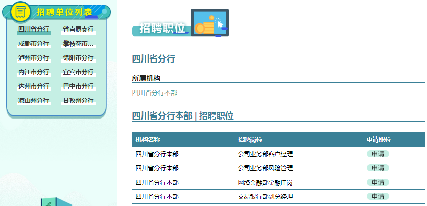 根據發展需要,中國郵政儲蓄銀行四川省分行現面向社會廣納賢才。我們真誠歡迎您加盟,攜手共同鑄造美好未來!
