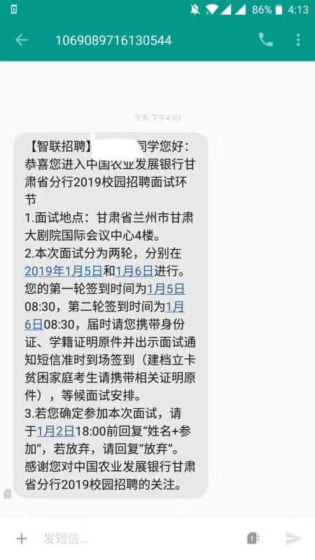 [甘肅]2019年中國農業發展銀行甘肅省分行校園招聘面試通知