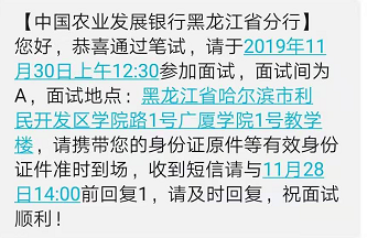 [黑龍江]2020中國農(nóng)業(yè)發(fā)展銀行黑龍江分行校園招聘面試通知