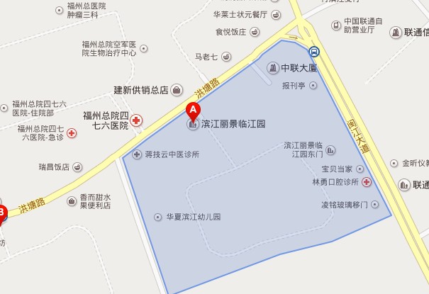 福州市建新鎮陣坂洪山橋空軍醫院門診部對面、濱江麗景小區背后,